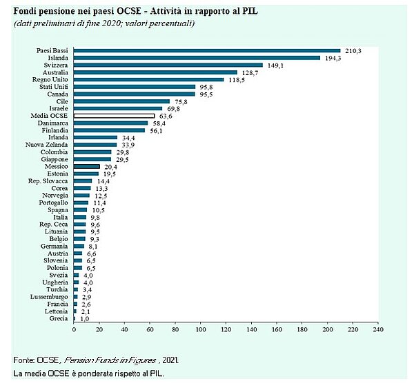 A quelli che il liberismo è Pinochet e i Chicago Boys, ricordo che gli attivi dei fondi pensione (privati) mettono l'Italia al 24° posto fra i paesi OCSE