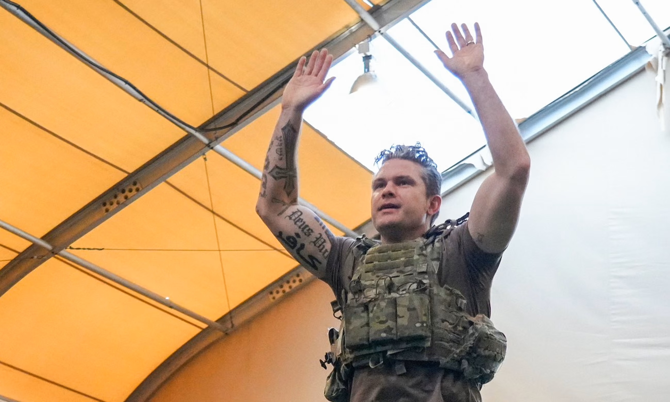 Hegseth stesso incarna la fusione tra dimensione militare e visione religiosa, non solo nelle dichiarazioni pubbliche, ma anche nella simbologia personale. I tatuaggi che porta sul corpo (img. 1) — dalla croce di Gerusalemme al motto delle crociate Deus Vult, fino alla parola araba kafir (“infedele”) — richiamano un immaginario che affonda le radici nelle crociate e nello scontro tra civiltà e religioni.