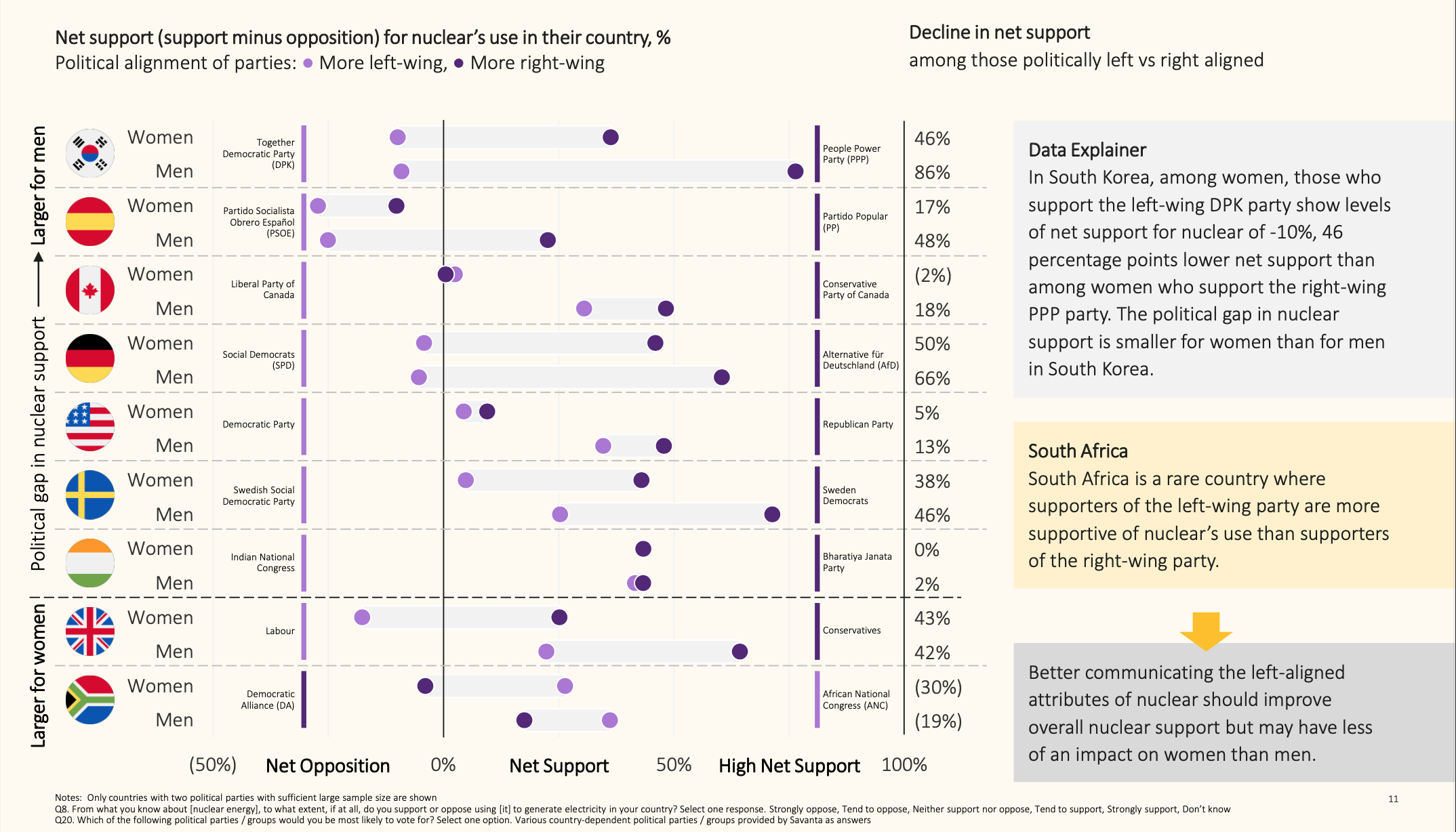 - Impatto Politico: Le donne tendono a preferire partiti di sinistra generalmente meno favorevoli al nucleare.