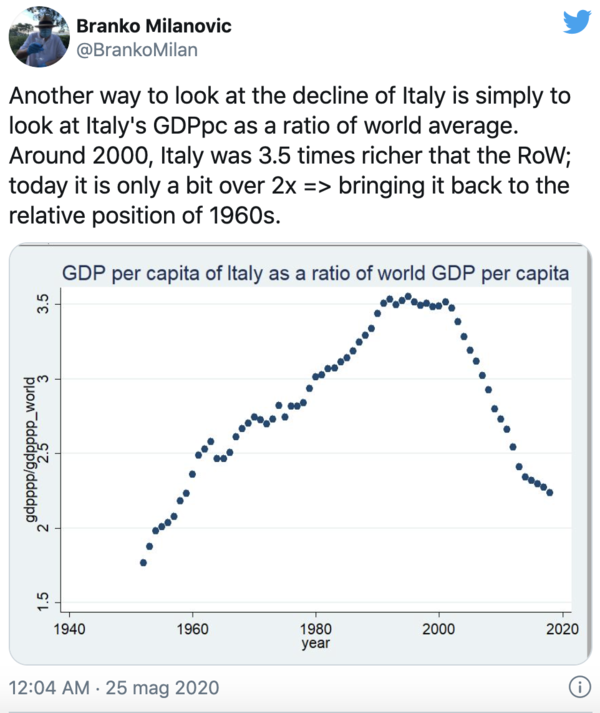 Si tratta di un meccanismo culturale molto importante, che ha avuto un ruolo cruciale nel declino degli ultimi decenni e dalla cui rimozione dipendono le possibilità di riscatto per il nostro paese nei prossimi anni.