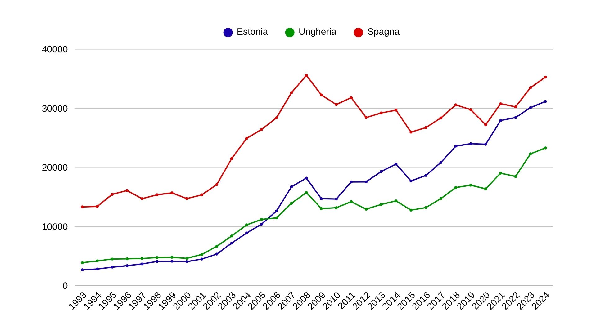 I risultati arrivarono rapidamente: il tasso di disoccupazione crollò fino al 6% e, attualmente nonostante la crisi post-Covid, la recessione prevista per il 2024 e l’instabilità mondiale, oggi si attesta intorno al 7%, un livello comunque considerato accettabile. Anche il PIL pro capite dell’Estonia è cresciuto costantemente, superando quello dell’Ungheria e avvicinandosi ai livelli della Spagna, un vero miracolo economico se si considera che nel 1993 il Paese baltico era ancora alle prese con le difficoltà della transizione post-sovietica.