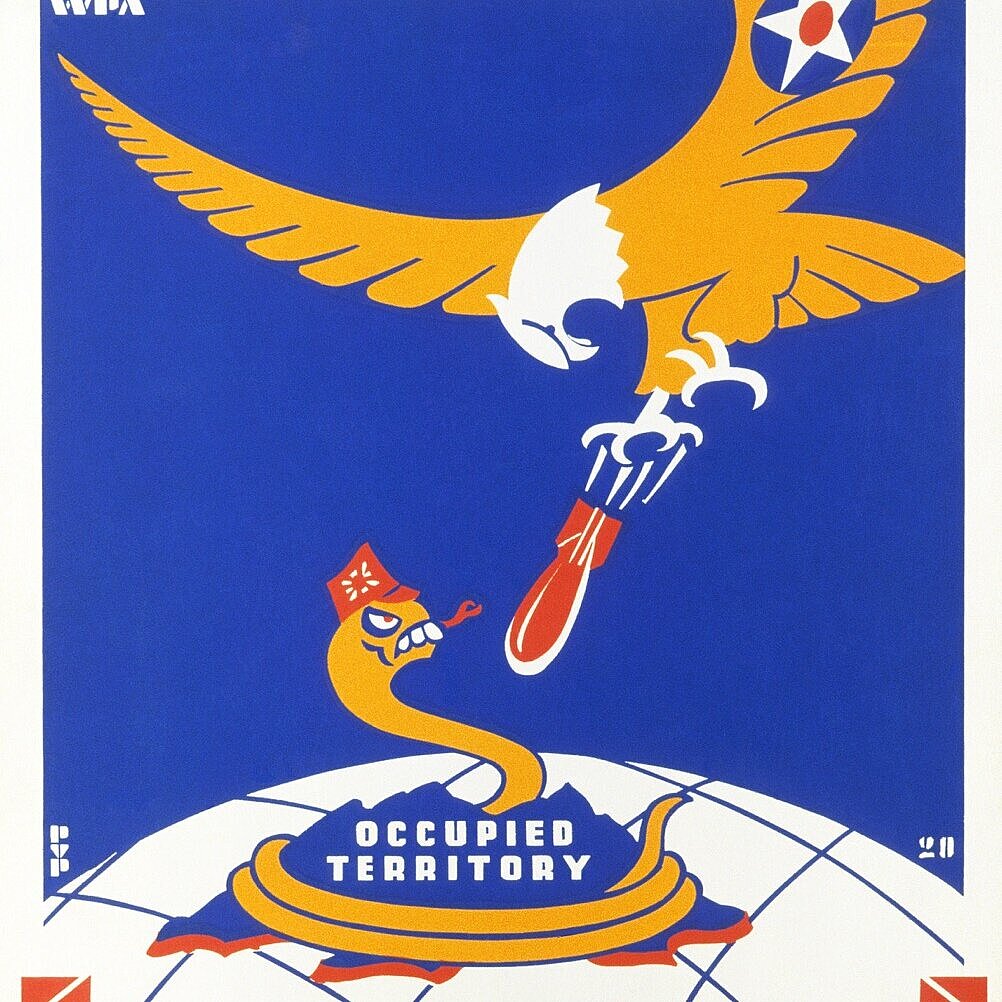 1) Marina degli Stati Uniti: raffigurante un serpente che rappresenta il Giappone bombardato da un'aquila. Un esempio di propaganda americana durante la Seconda Guerra Mondiale, Fonte, Phil von Phul, Wikimedia Commons