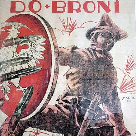 4) Guerra polacco-sovietica: manifesto di reclutamento polacco del 1920. Il testo recita: "Alle armi! Salvate la patria! Ricordate bene il nostro destino". Fonte, autore sconosciuto, Wikimedia commons