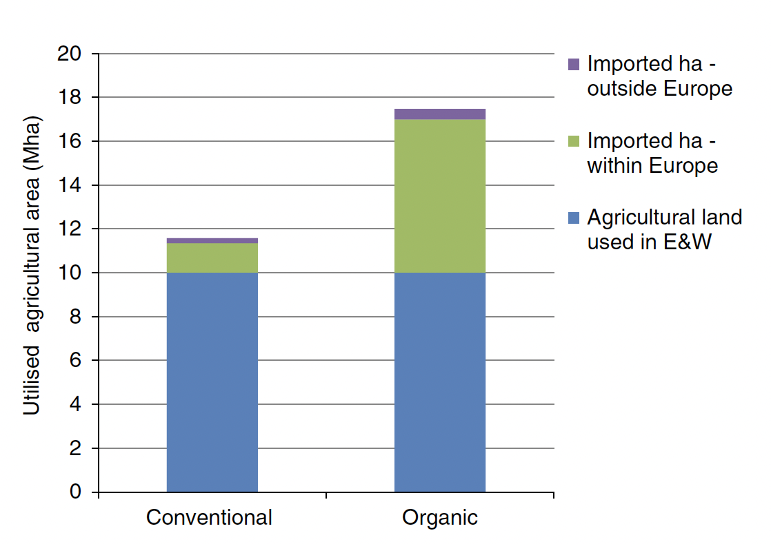 In un altro studio sempre di Nature in una proiezione sempre 100% biologico, ma questa volta solo sul suolo inglese, si è posto in evidenza come l’uso di suolo aumenti ed aumenti anche la quantità di cibo importato dall’estero.
