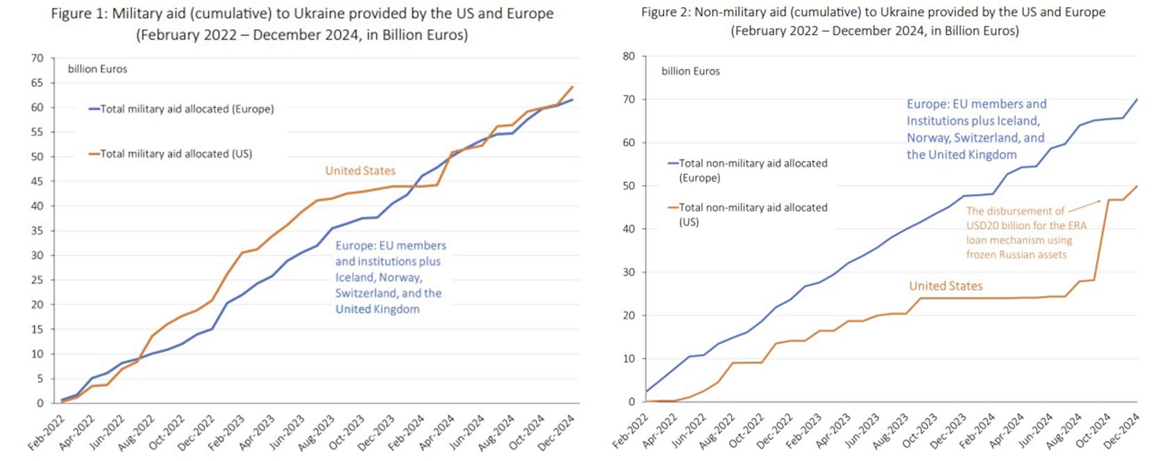 L’Unione Europea, sia in termini di risorse proprie che in tema di accordi bilaterali con Kyiv stipulati dai singoli Stati Membri, ha fatto più degli Stati Uniti sia in termini assoluti che in termini relativi.