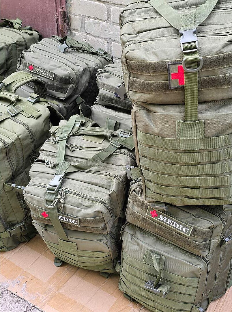 Dopo aver raccolto più di 30k € che hanno permesso l'acquisto di 45 zaini medici e 20 kit da trincea (le cui consegne - tutte documentate - sono quasi terminate e verranno a settembre elencate in dettaglio nella pagina apposita), abbiamo deciso di continuare a tenere aperta la raccolta in modo stabile, data l'enorme richiesta che c'è da parte di medici e paramedici al fronte.