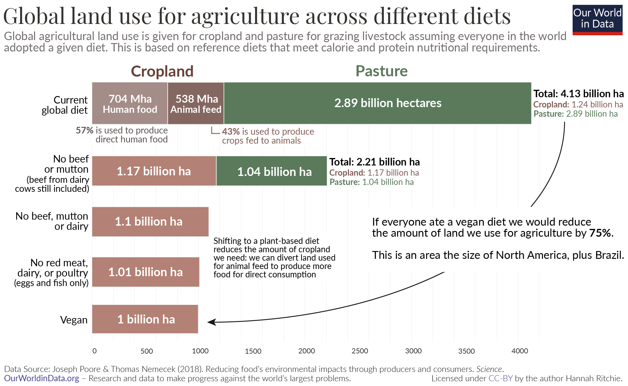 La maggior parte del suolo occupato da parte dei ruminanti è costituita da pascoli; tuttavia è necessario prendere in considerazione due particolari aspetti: