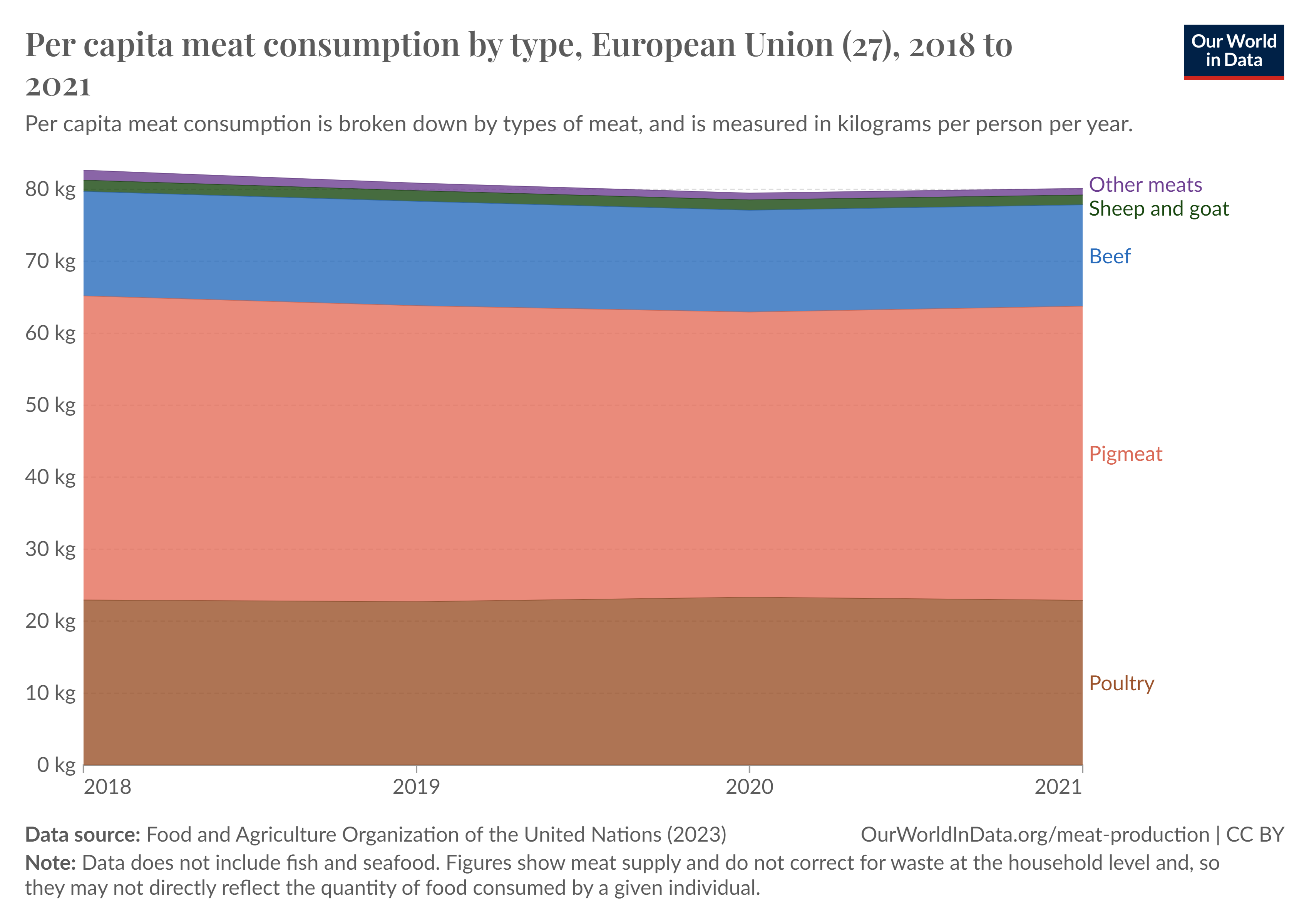 La FAO dichiara addirittura un consumo pro-capite di circa 80 kg di carne all'anno.